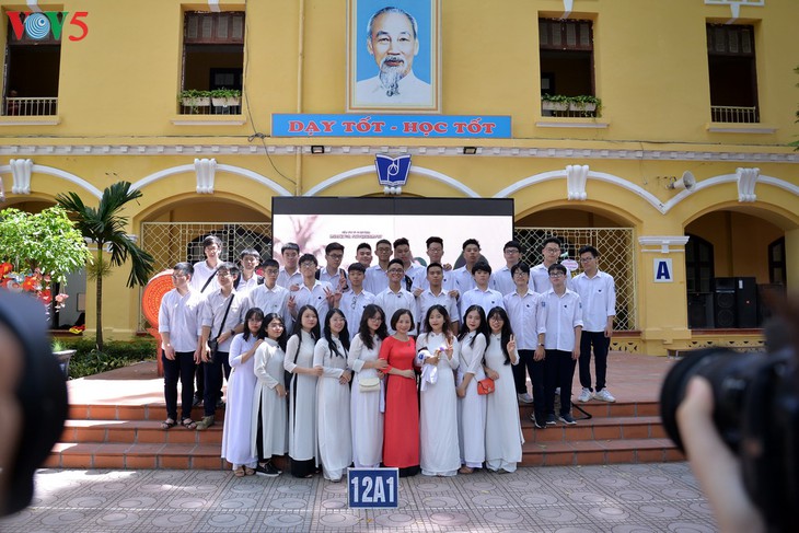 Ein großer Plakat im Hof der Oberschule Viet Duc mit tausenden Unterschriften der Zwölftklässler vor dem Abschied von der Schule. |