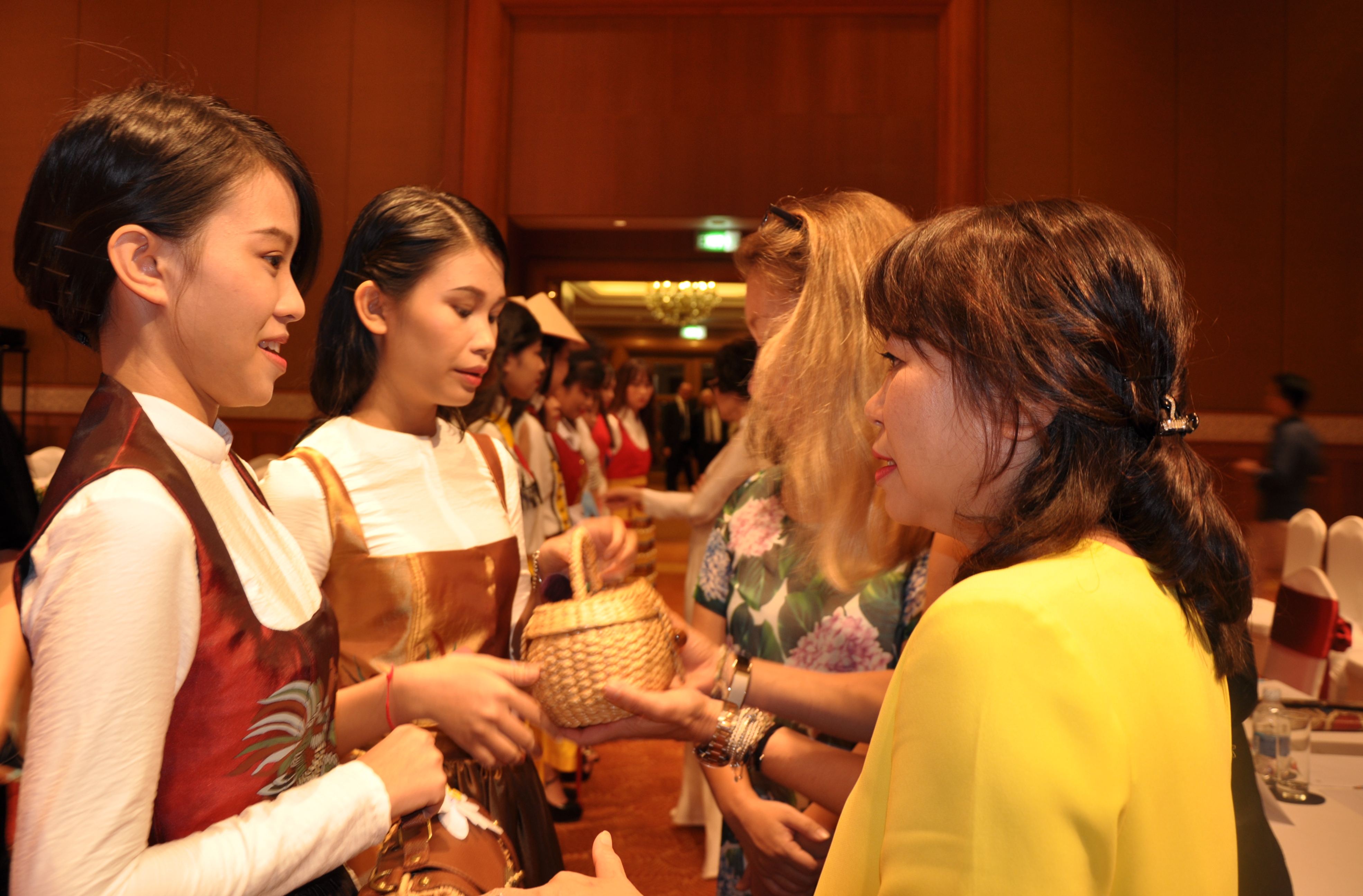 Die Dekoration auf dem Design der Preisträgerin ist die Zeichnung aus dem folkloristischen vietnamesischen Bild Dong Ho.