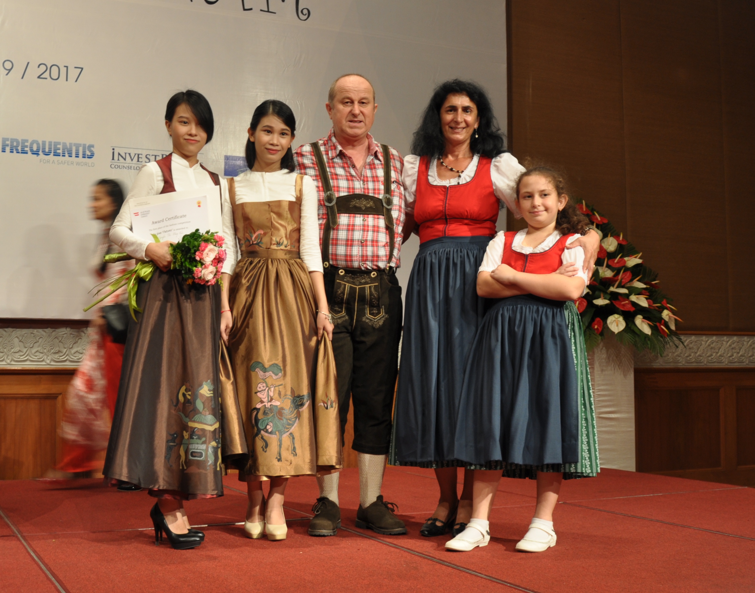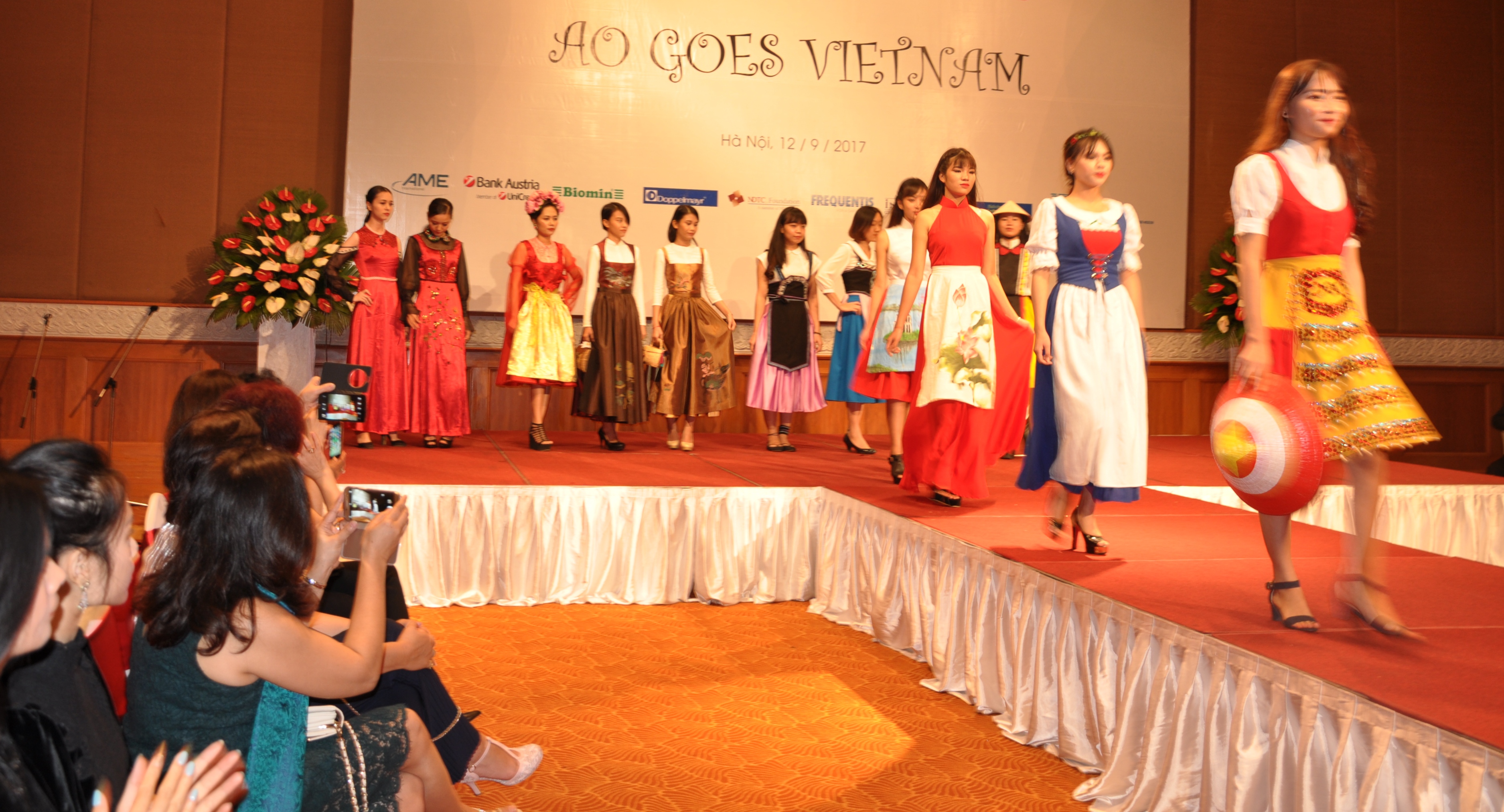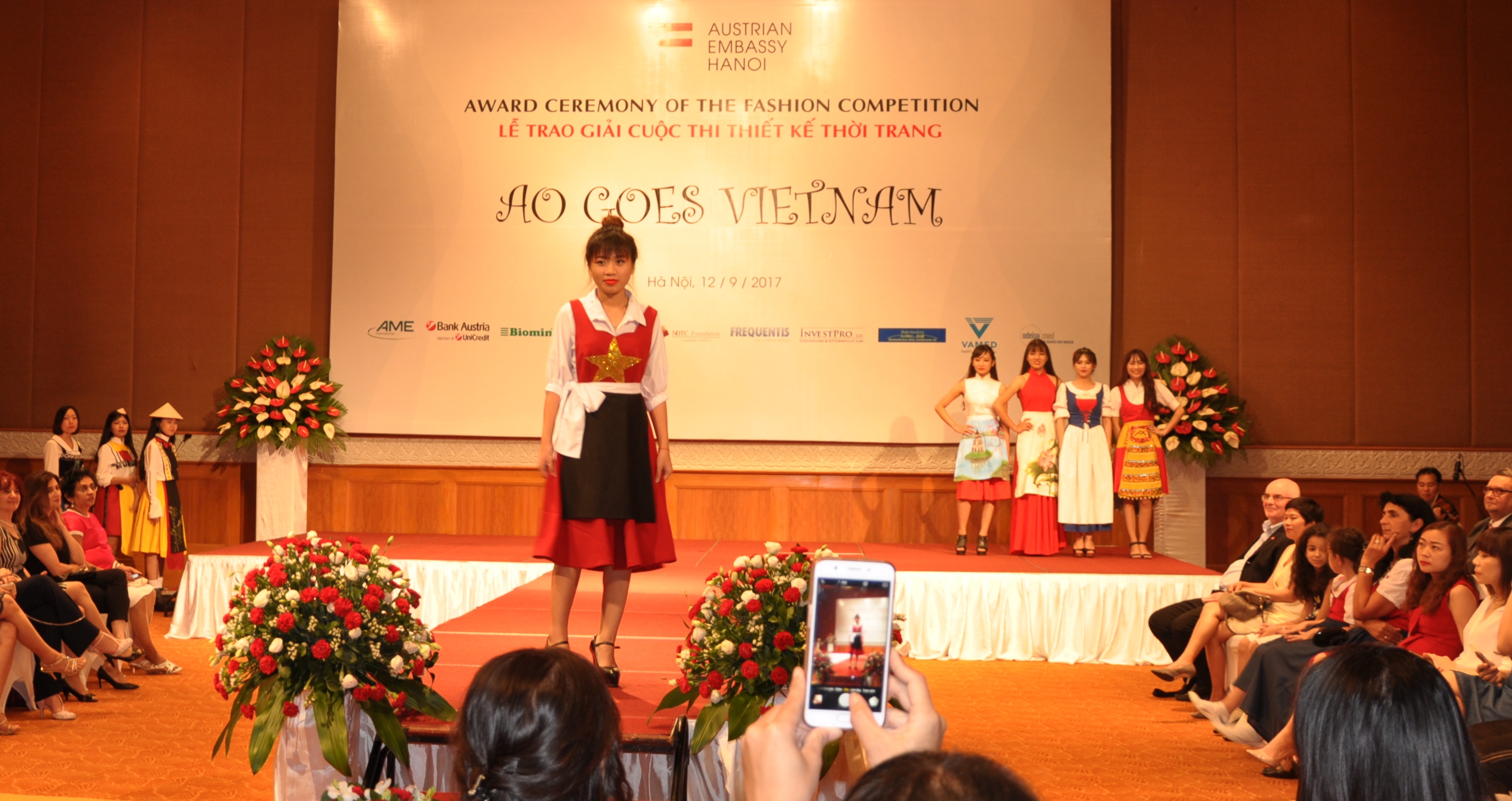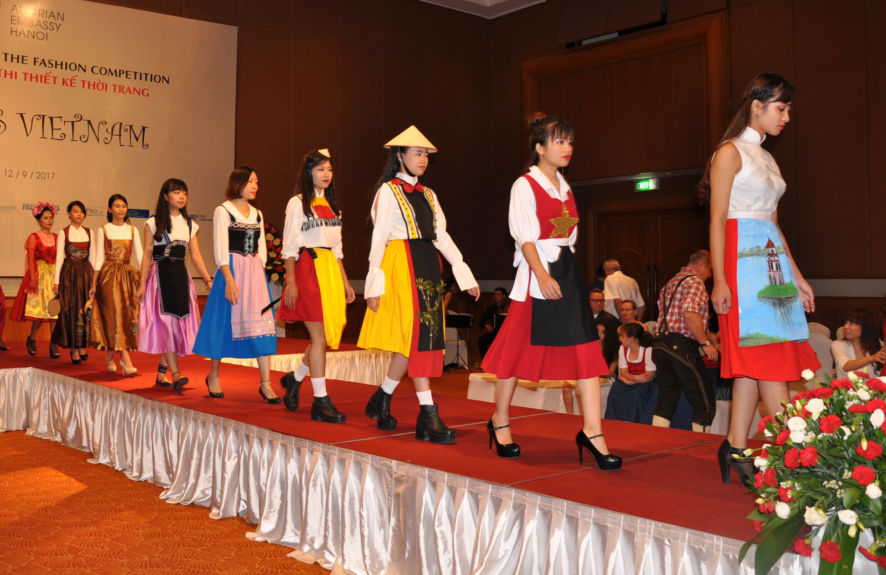 Die jungen vietnamesischen Designer haben Chancen, die österreichische Nationaltracht im modernen Stil zu interpretieren.