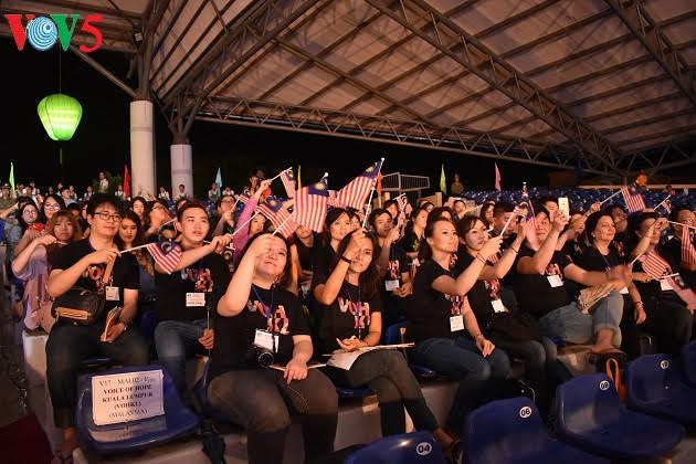 | Die Zuhörer erleben spektakuläre Moment durch die wunderschönen Melodien während des Chor Wettbewerbs in der Altstadt Hoi An |