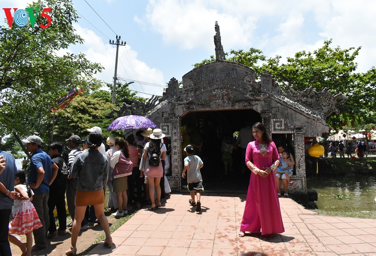 | Im großen Raum der Brücke liegt der Altar der Frau Tran Thi Dao, die Geld für den Bau der Brücke gespendet hatte. |