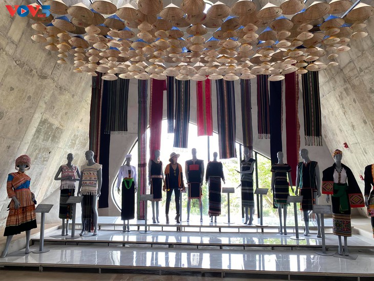Das Museum-Hauptgebäude hat die Form eines langen Hauses der Volksgruppe der E De und des Rong-Hauses in Tay Nguyen. |