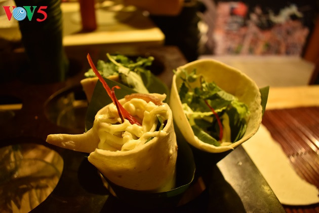 | Cao-Lau wird in Crepes verpackt, damit die Touristen sie leicht mit sich nehmen können. |