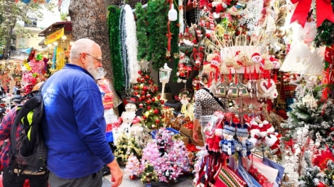 (VOVWORLD) - In zwei Wochen ist Weihnachten. In Hanoi kann man bereits die Weihnachtsstimmung spüren. Weihnachtskränze, Tannenbäume und Schneemänner machen die Straßen in Hanoi lebhafter.