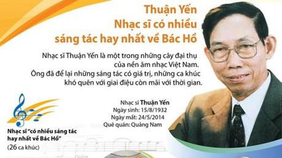 In diesem Jahr feiert Vietnam den 5. Todestag des Songschreibers Thuan Yen. Seine Lieder beschäftigen sich mit unterschiedlichen Themen. Sie handeln von dem Präsident Ho Chi Minh, den Soldaten oder erzählen über tiefe Liebesgeschichten. Alle seine Werke sind von dem Publikum sehr beliebt und leben ewig mit der Zeit.