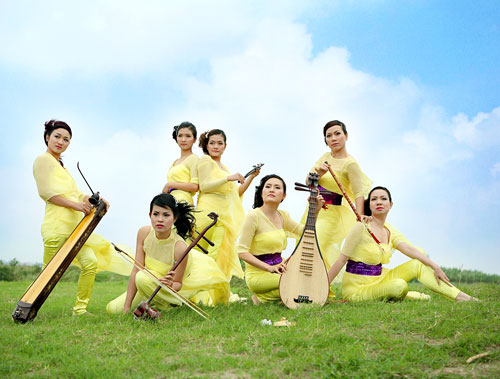 „Co la“ hat acht Musikerinnen und Sängerinnen, die die folkloristischen Musikinstrumente gut spielen. (Foto: giadinh.net.vn)