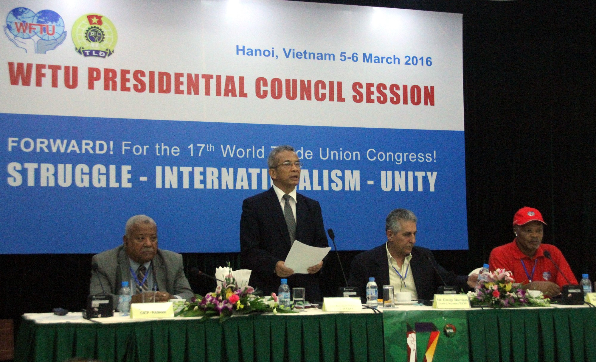 Blick auf die Konferenz des Präsidialrats des internationalen Gewerkschaftsbundes in Hanoi. (Foto: laodong.com.vn)