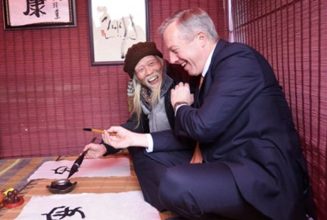 | US-Botschafter in Vietnam Ted Osius bei Kalligrafie. (Foto: Hong Duy) |