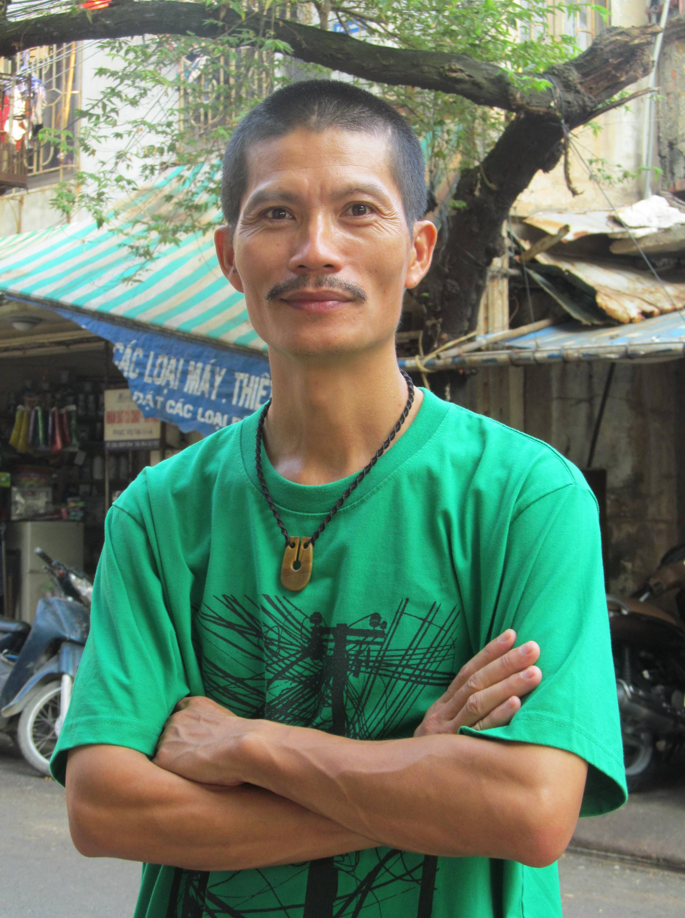 “Nguyen Ngoc Dan ist ein junger Maler. Er ist fleißig bei der Suche nach Neuem. In Vietnam gibt es kaum Maler, die sich mit dem Thema Stromleitung beschäftigen. Aber Nguyen Ngoc Dan hat sich mit richtiger Leidenschaft dafür engagiert. Die Gestaltung in seinen Werke ist eindeutig, und entspricht seiner Laune.“