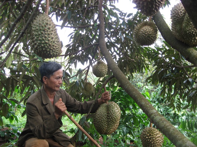 | Veteran Trinh Van Sy beschäftigt sich mit der Durianplantage. (Foto: baodaklak.vn) |