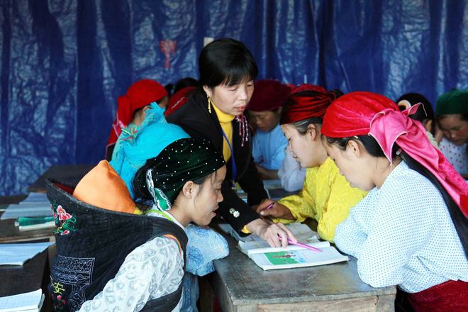 Viele Einwohner im Kalkplateau Tua Chua lernen Schrift und Sprache der Mong.