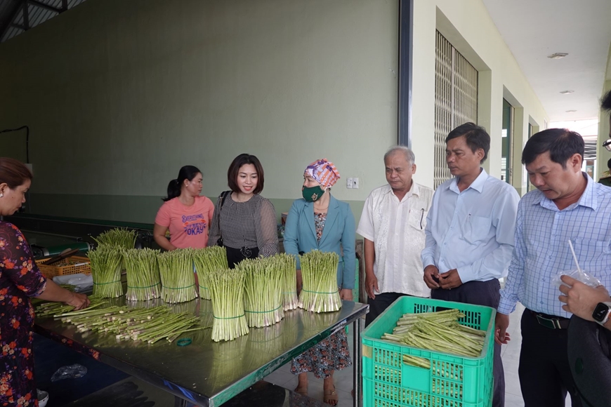 „Das Anbau-Modell von Spargel muss nach einer Wertkette geführt und biologisch vorangetrieben werden, sowie die Kriterien zur vietnamesischen guten landwirtschaftlichen Praxis erfüllen. In der Gemeinde An Hai gibt es neben einer Genossenschaft die Gruppen, die die Spargel der Bauern sammeln und einkaufen. Neben der Bereitstellung von Setzlingen organisieren wir Trainingskurse über Anbautechnik, Produktion und die Ernte für die Bauern. Der Absatzmarkt für Spargel ist auch stabil. Deswegen wird das Einkommen der Bauern hier erhöht.“