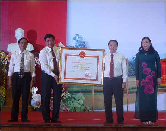 | Der Kreis Hoa Vang bekommt die Urkunde der Regierung für die Erfüllung der Kriterien des nationalen Programms. (Foto: danang.gov.vn) |