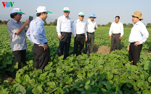 | Eine Delegation des Landwirtschaftsministeriums informiert sich über das Modell zum Anbau von Mungbohnen in Ninh Thuan. |