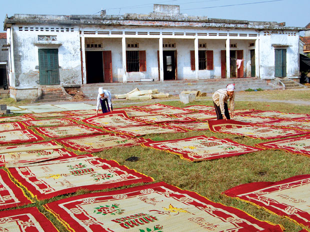 Von der Stadt Thai Binh fährt man noch weitere 40 Kilometer auf kleinen Straßen durch die gelben Reisfelder, dann erreicht man das Dorf Hoi, ein Handwerksdorf, das bekannt ist für Riedgras-Matten.
