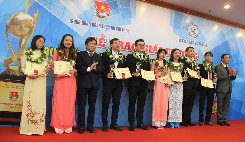 Nguyen Thi Anh Duong (4.v.r.) wurde Ende 2017 für ihren hervorragenden Leistungen im Wissenschaftsbereich mit dem Preis “Die goldene Kugel” ausgezeichnet. (Foto: Thanh Hung/vnu.edu.vn) |