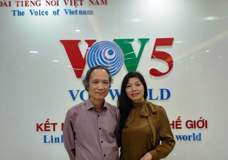 Das Ehepaar Nguyen Thien Tuong und Hoang Thi Du in einem Besuch beim Auslandsdienst (VOV5) der Stimme Vietnams. (Foto: Bao Trang)