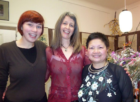 | Die Gründerin von VINAPHUNU, Hoai Thu (r.) und ihren internationalen Freundinnen in einer Veranstaltung, die von VINAPHUNU organisiert wurde. |