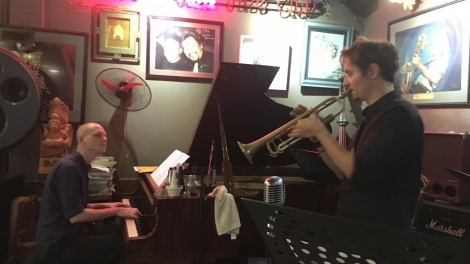 (VOVWORLD) - An einem feuchten Abend führten die beiden österreichischen Künstler, Jazzpianist Jörg Leichtfried und Trompeter Dominik Fuss erstmals Publikum in Vietnam durch ihr Repertoire. Zusammen mit Jazz-Künstlern aus Vietnam boten beide Österreicher im Binh-Minh-Jazzclub in Hanoi und im Sax n’ Art Jazzclub in Ho-Chi-Minh-Stadt ein ganz spontanes Programm. Das melodische Gefühl von Fuss kombiniert mit den harmonischen Klängen von Leichtfried hauchte sowohl gängigen Jazzstücken als auch Eigenkompositionen eine ganz besondere Atmosphäre ein.