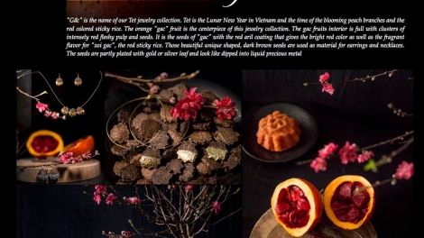 (VOVWORLD) - In einer Reihe von Veranstaltungen in Vietnam wie dem deutschen Weihnachtsmarkt oder der Modesschau zur Begrüßung des Neujahres des Schweins ist das Publikum in Vietnam von einer Schmuck-Kollektion der Künstlerin Christiane Campioni beeindruckt. Sie wurde aus Kernen der Gacfrucht gemacht. Mit einer Sondertechnik hat die 43-jährige Deutsche die getrockneten Gac-Kerne gemeinsam mit Gold- oder Silbermaterialien bearbeitet, um seltene Ohrringe und Halsketten herzustellen.