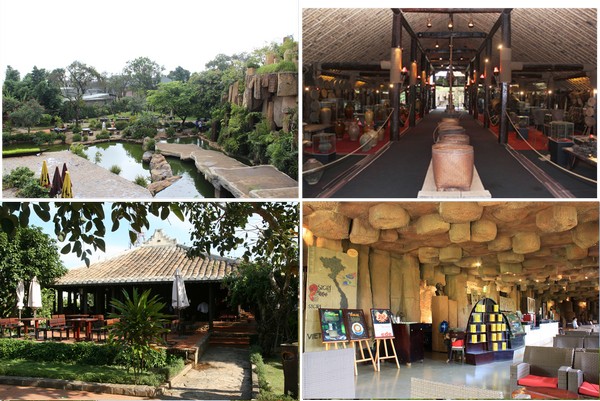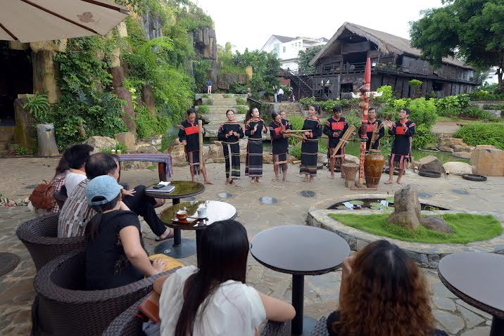Trung Nguyen coffee village in the center of Buon Ma Thuot is surely the place that attracts the most tourists. Covering 20,000 square meters, the café embraces the architectural style and cultural identity of the Central Highlands. The café does double duty as a museum dedicated to the history of coffee growing in Vietnam and around the world. Here, you can of course, enjoy a good cup of coffee, but you will also learn a lot about coffee: its history, coffee drinking cultures in Vietnam and other places around the world like Ethiopia, Turkey, and Italy, coffee harvesting and processing, preparation, and especially the art of tasting. In addition to Trung Nguyen’s G7 brand coffee, various other types of coffee are on offer in this café like Cappuccino, Latte, L’mour, Mother Land and Red Rose as well as Weasel, Legendee, and Passionate. After the visit, you'll be a coffee expert. H'Thanh K Po, an Ede ethnic and professional guide said:"After picking, the beans are dried. Once dry, they are peeled. We use a wooden mortar and pestle to do this step. After that, we roast the coffee and then use the same mortar to grind the roasted beans. Finally, we simmer the coffee in a bag”.