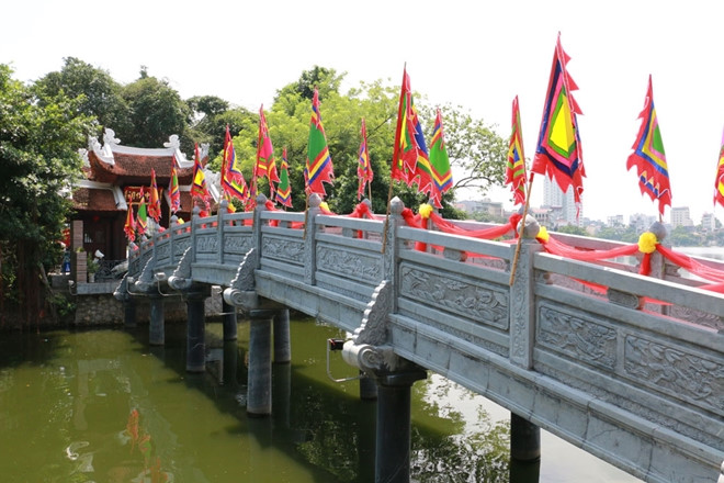 Following a major restoration, a stone bridge was built connecting the temple with the mainland. In the temple, there are a number of bronze statues and objects cast by artisans of Ngu Xa bronze casting village nearby.