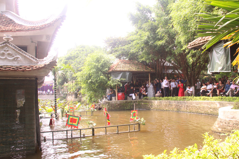 Dong Ngu villagers travel dozens of times each year to perform and promote their water puppetry and “Quan Ho” love duets to audiences all over Vietnam. Dong Ngu performers control their puppets with both strings and rods, enabling more complicated movements. Their puppets can even crawl on all four limbs. It is the folk tales retold by the water puppet troupe that make it distinct from other troupes.
