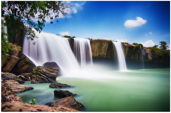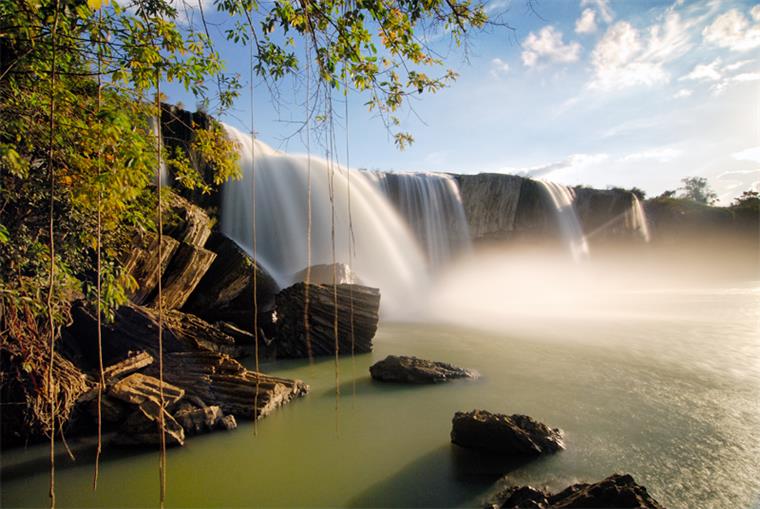 Dray Nur waterfall in Kuop village is about 25 km south of Buon Ma Thuot city. The waterfall, which is 250m long and 30m high, is the most beautiful and largest of the three waterfalls on the Serepok River. From afar, Dray Nur offers a spectacular panorama. Dray Nur is renowned for its purity and for its incredible legends. Dray Nur in the local language, means Female or Wife Waterfall. According to one legend, a beautiful E De girl and her boyfriend were sitting on a big rock, when a monster appeared in a column of water and drove the young man away. When he returned, he discovered that his girlfriend had been taken by the monster. The rocky bank beside the waterfall is the place where the young couple sat and the waterfall is the column of water where the monster appeared.