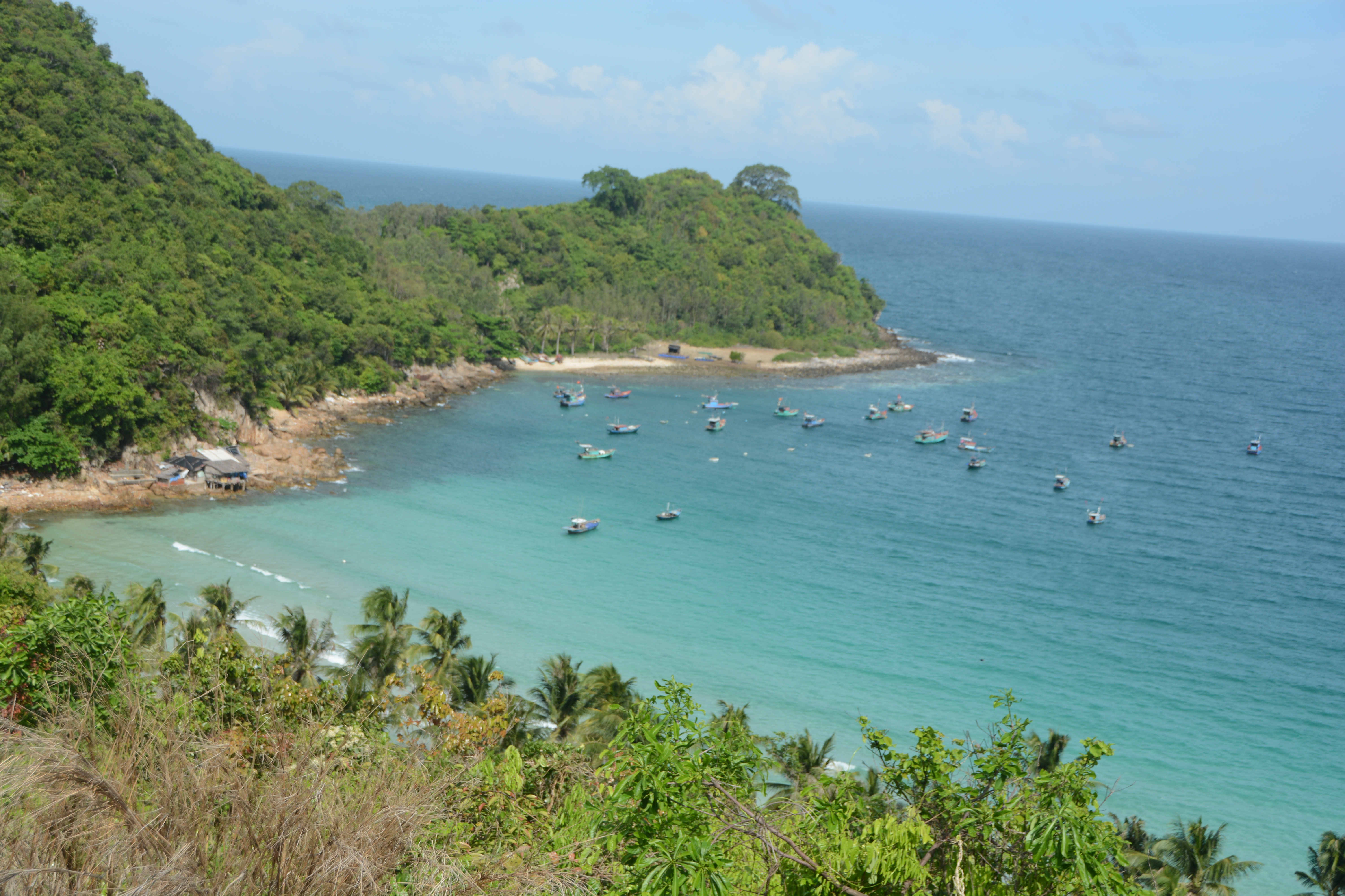 Tourists can hire a motorbike to discover the scenery and life of the local people on a 12 km road around Hon Lon islet. From a height of 300 meters above the sea level, visitors can see the islets of different shapes and sizes under the blue sky of Nam Du. Along the coast are fishing villages, small houses nestled in green coconut trees. Nguyen Hue Linh is a tourist from Hanoi: “I love travelling and exploring new things. The first impression about Nam Du islands is the beautiful landscape with blue sea and green coconut trees. This makes Nam Du different from the others”.