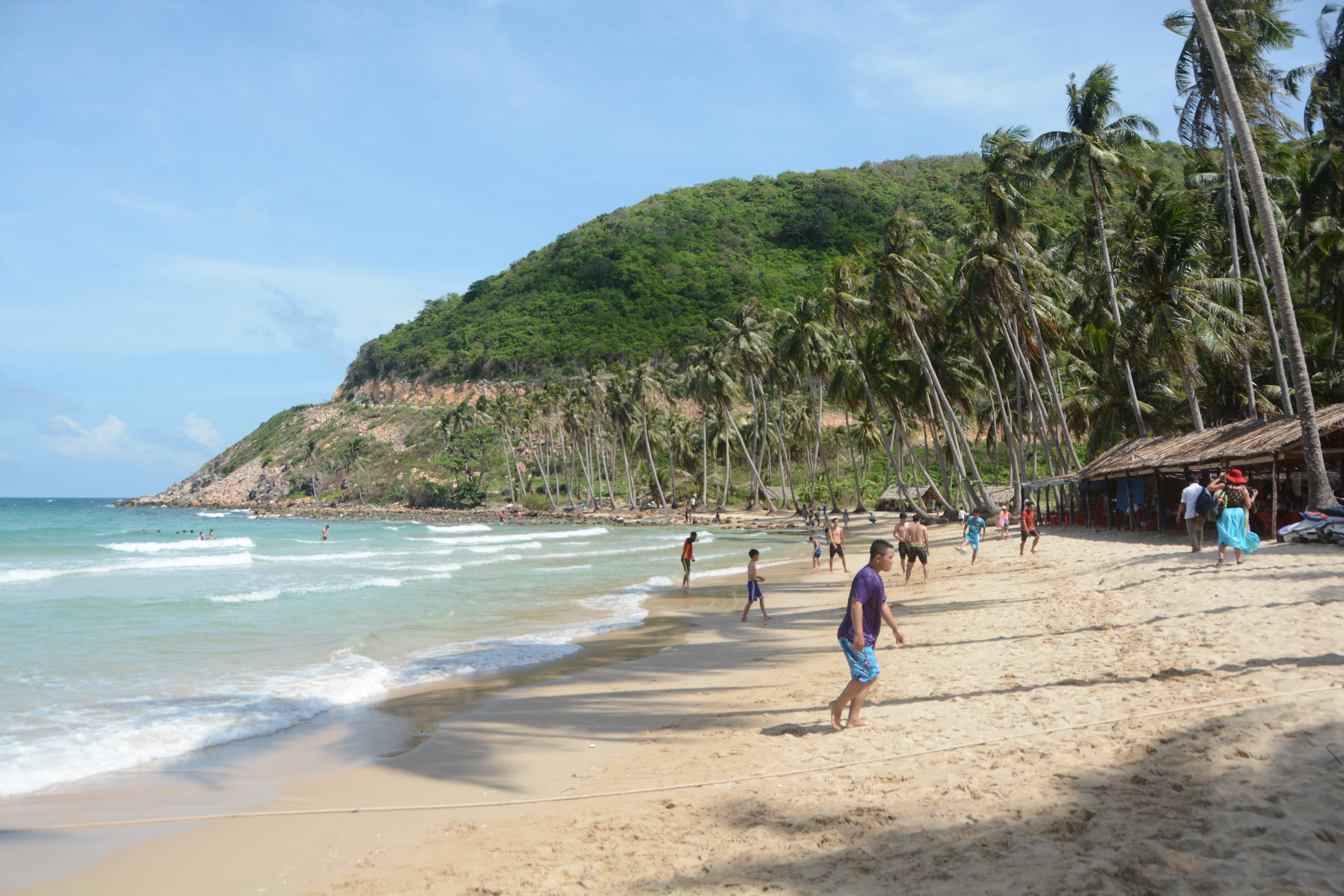 Coming to Nam Du, it is impossible to miss Men beach, the most beautiful beach in the area. Men has sloping sand with lines of coconut trees, clear and peaceful sea. Ms. Bich Ty, a visitor from Ho Chi Minh city, said she escaped from the busy life and enjoyed the magnificent scenery here: “I am first impressed by Nam Du’s blue sea and greenness. It has a clean environment and magnificent ambience. The white sand and crystal blue water brings great pleasure to visitors. The unspoiled scenery makes Nam Du an attractive tourist destination”.