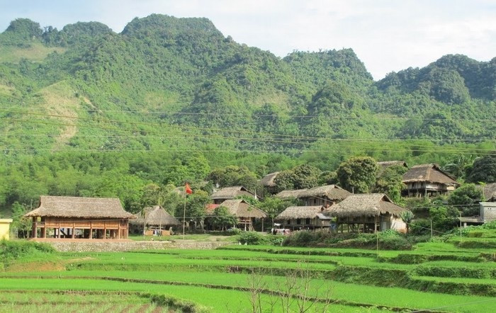 Giang Mo village is located at the foot of Mo Mountain, surrounded by green valleys and terraced rice fields. More than 100 Muong ethnic minority families live there. Visitors come to explore the customs and the daily life of the local people.
