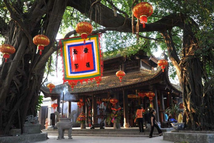 The 3,000 square meter temple faces a half-moon lake and the Red River dike. Since it was built in 1279, the temple has undergone repeated restorations but retains its original beauty.