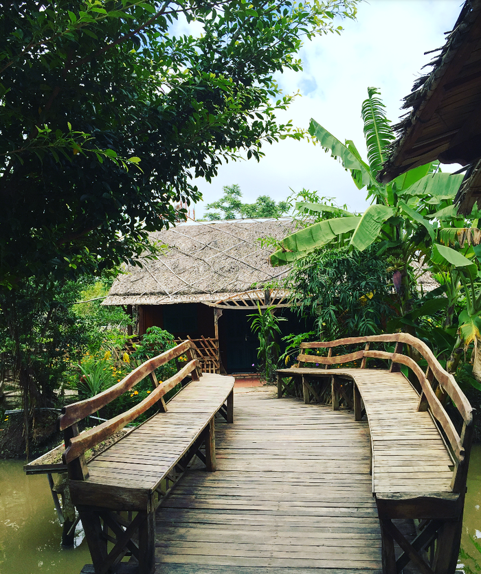 The Vàm Xáng fruit garden has developed in the past 2 years as an impressive homestay area which features wood and bamboo houses with thatched roofs. The path around the garden and bamboo bridges crossing the canals are always packed with visitors, many of them foreigners, riding bicycles or strolling around.