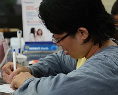 | A customer fills in a deposit form at a bank in HCMC. Many banks expect deposit and lending rates to drop by 0.6-0.7% point later this year (Photo: Uyen Vien) |