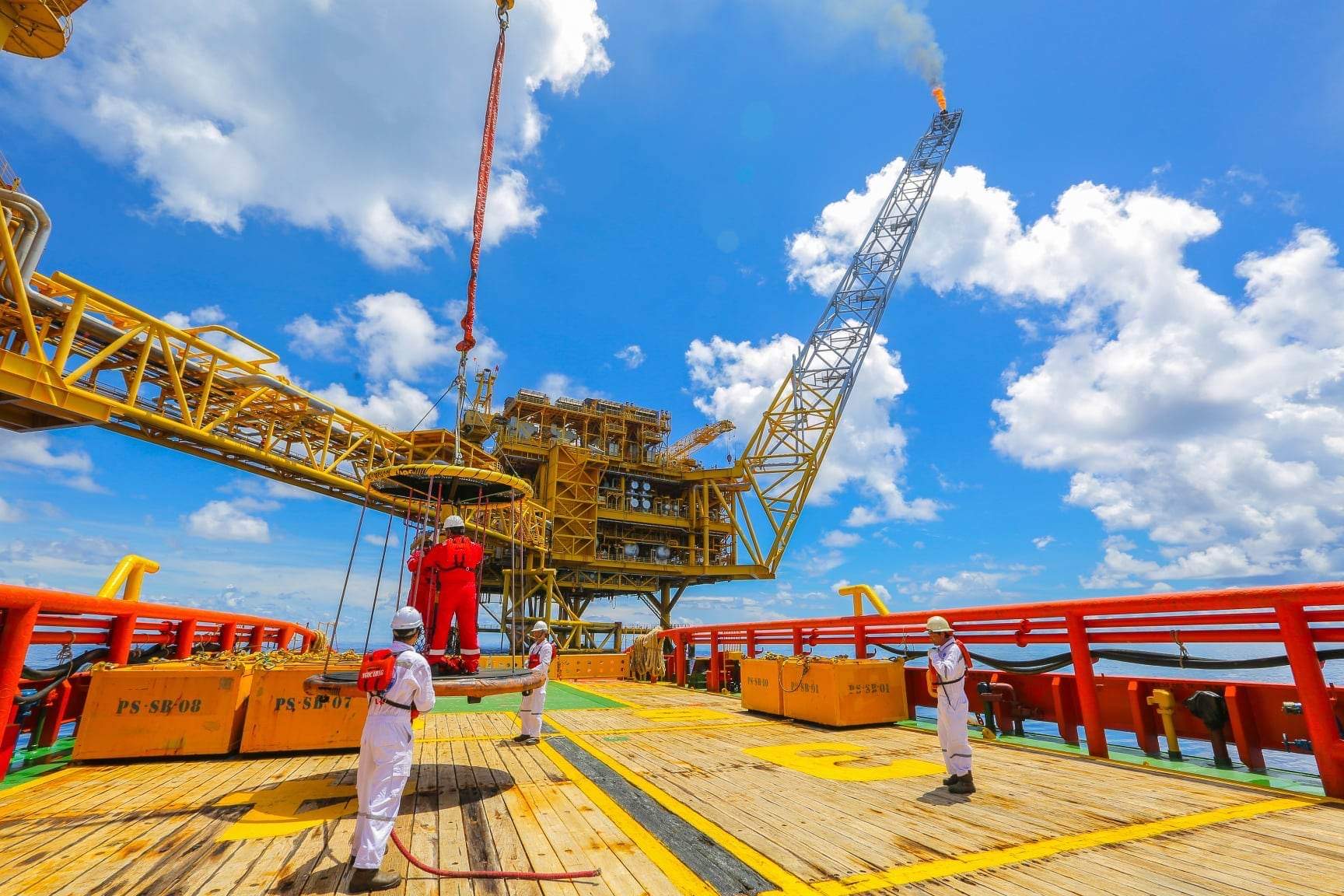 Workers on an offshore platform. |