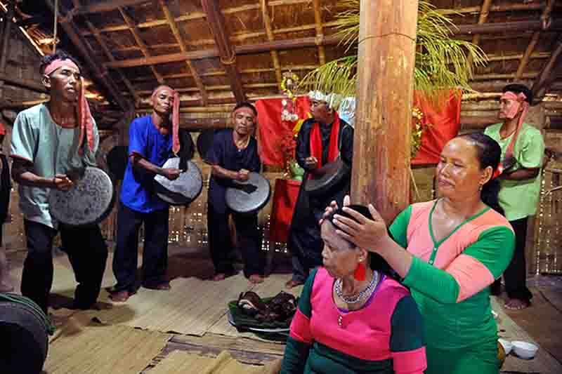 En la ceremonia de agradecimiento a los padres, la etnia Raglai ora a sus ancestros para bendecir al pueblo y la familia con paz y abundantes cosechas. Al cierre del ritual, empieza la parte festiva. La familia y los invitados se mezclan con las actuaciones de ma la (un instrumento musical tradicional), cantan y bailan deseando suerte y éxito a todos.