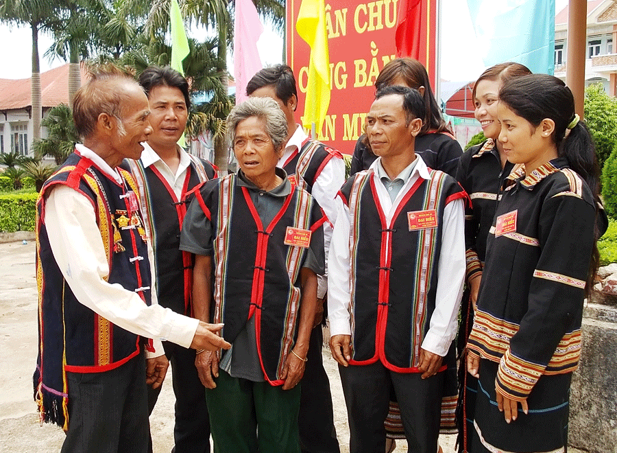 Antaño, la vida en dependencia de la naturaleza influyó mucho en las costumbres de las minorías étnicas establecidas en los altos de Tay Nguyen. Organizaban muchos ritos y ceremonias para pedir que las deidades del sol, el fuego, el agua, la montaña, el río, el bosque y el arroz, entre otras, les garantizasen buen tiempo y abundantes cosechas. Sin embargo, frente a las amenazas de la naturaleza y los ataques de los animales salvajes necesitaban alguien realmente valiente, experimentado y de gran prestigio para que les guiaran. Esto explica el porqué del nombramiento de los patriarcas, un título que existe en paralelo con el de jefatura de las aldeas. Hoy en día, estos hombres siguen siendo líderes espirituales y el centro de la solidaridad comunitaria. Son ellos los que dirigen los quehaceres culturales y espirituales de cada poblado.