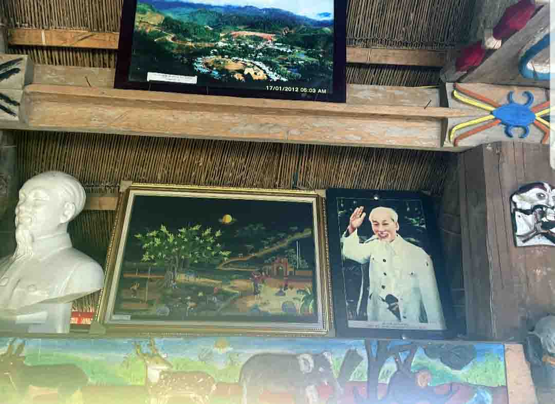 Busto y fotografía del presidente Ho Chi Minh se exhiben en la casa comunal Guol de la etnia Co Tu en la comuna Lang, distrito de Tay Giang, provincia de Quang Nam. |