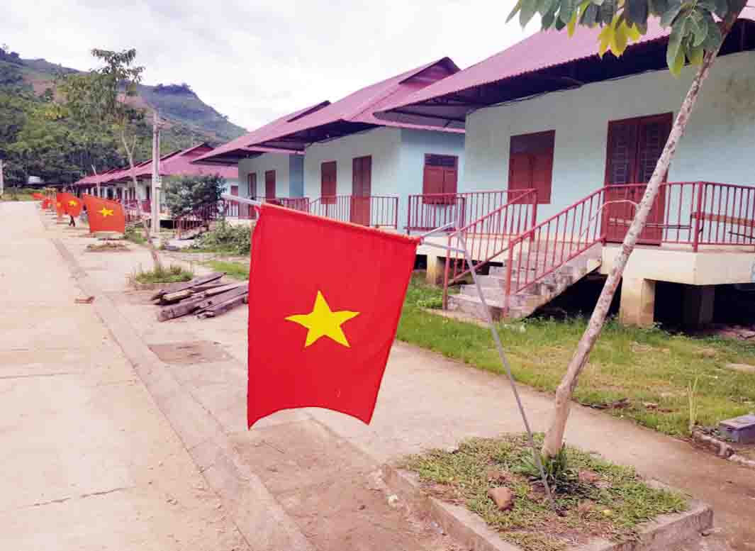 La bandera nacional colgada en la zona residencial de Bang La, comuna de Tra Leng, distrito de Nam Tra My, provincia de Quang Nam. |