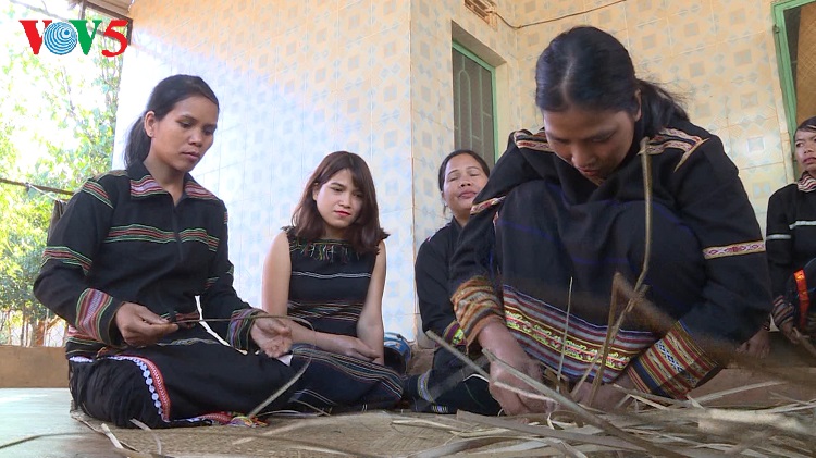 Artesanas de las aldeas de Sung Lon y Sung Nho, en el distrito de Duc Co, enseñan a las mujeres locales a tejer esteras de pran |