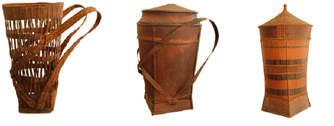 Además de sus formas particulares, estas canastas son fabricadas con técnicas complicadas. Los materiales, el bambú y mimbre, tras ser seleccionados, son colgados sobre la cocina bajo el techo hasta que estén secos. Luego, estos se colocan en agua durante unos tres días para que una vez cortados en varitas finas, estas sean flexibles y resistentes.