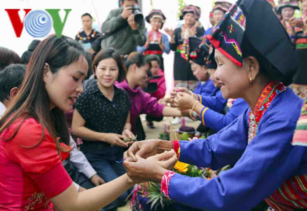 Esta costumbre no requiere mayores actividades, ni mucho tiempo ni ofrendas, ya que cualquiera puede atar un hilo en la muñeca del otro en todo momento para desearle salud y seguridad. El color del hilo varía dependiendo de la persona. El rojo y el negro se usan para los niños y el blanco, para los fallecidos. Respecto a esto, Tong Thi Binh, hechicera de la aldea de Mong, dijo lo siguiente: “Se debe atar bien un hilo en ambas muñecas rezando por la salud y la inteligencia para espantar a los malos espíritus. Por lo tanto, quienes están enfermos se sentirán mucho mejor si tienen muchos hilos atados por un gran número de familiares. Es una manera de consolidar el espíritu y la determinación de superar la enfermedad o la tristeza después de perder un miembro del hogar”.