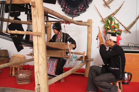 Un espacio sobre el Noroeste de Vietnam con flores blancas, manantiales, cayucos, casas sobre pilotes de los Thái, cercas construidas de piedras, molinos de maíz y las sopas de “men mén” y “thang co” de los Mong, reprodujo la cultura de la población autóctona.