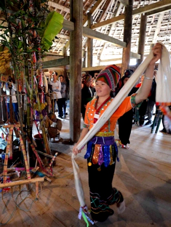 Los sonidos que están escuchando son cantos en el festejo Gau Tao, uno de los más característicos de la etnia H´Mong en la comuna de Duong Thuong, provincia de Ha Giang. Entre los sonidos de flauta, zampoña y cantos el patriarca Song Lo Giang realizó los rituales, expresando gratitud al cielo y la tierra por otorgar a los étnicos buena salud y abundantes cosechas. En el árbol del Tet levantado en el centro de la Villa cuelgan una botella de vino y un pedazo de tela roja para informar a los espíritus e invitar a los aldeanos y nacionalidades hermanas a compartir la alegría. En la localidad la organización de la festividad Gau Tao tiene como objetivo pedir felicidad y suerte a los miembros de cada familia y en la Aldea Cultural y Turística de Etnias Vietnamitas, esta celebración invocará todo lo mejor a la comunidad H´Mong participante. Es además el lugar para que los jóvenes se encuentren, intercambien cantos románticos y se amen. El joven Giang Mi Phu de la etnia H´Mong compartió: “Anteriormente los H´Mong efectuaban la fiesta Gau tao para desear tener más hijos saludables y que sus trabajos y cultivos prosperaran. Hoy reproducimos este jolgorio para presentar un hermoso rasgo cultural de nuestra etnia.”