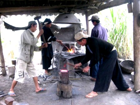 Situada en la carretera nacional 3 desde la capital provincial de Cao Bang hasta la puerta fronteriza de Ta Lung, la comarca de Phúc Sen tiene l0 aldeas, entre ellas 6 se dedican a la herrería. Sus productos como cuchillos, tijeras e instrumentos agrícolas son famosos en la región y provincias vecinas desde hace varias generaciones. Generalmente la fragua solo se practica en ciclos de tiempo muerto, sin embargo, debido a que Phúc Sen tiene pocas tierras cultivables, los hornos locales arden casi todo el año. En especial en las cosechas, a los herreros no les da tiempo para satisfacer los pedidos. Nong Luu Luyen, dueño de una herrería en el poblado Thanh Minh dijo: “En esta época recibimos pedidos de muchas provincias. Nos solicitan cuchillos para carnicerías. Si no pueden venir a recogerlos se le enviamos en un transporte”.