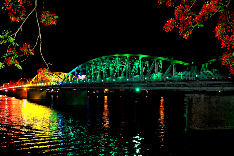 El puente de Truong Tien de noche