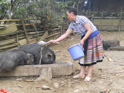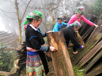 Las fotos de la señora Ban Thi Dan se refieren a la ayuda mutua entre los Dao en el trabajo agrícola y en la construcción de viviendas: “Aquí los compatriotas se ayudan mutuamente. En otras localidades se deben contratar a los jornaleros. En las fiestas o concurrencias, la gente lleva el traje multicolor de nuestra etnia muy colorido y cuando trabaja en el campo se viste normalmente”.