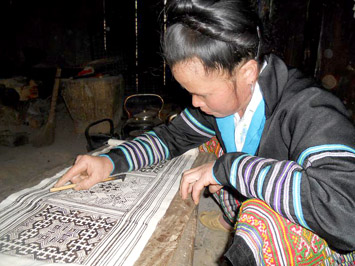 A la señora Dan le gusta tomar fotos de las Dao bordando. Dio a conocer que después de finalizar el trabajo en el campo ellas aprovechan el tiempo ocioso para bordar. La imagen de la mujer que se sienta ante la terraza para adornar fue fotografiada de modo natural. “Cuando labraban, sus imágenes eran muy bonitas, por ello las retraté para mostrar a los aldeanos. Las Dao recaman con el doble hilo mientras los Mong lo hacen con un hilo. Este trabajo depende de cada persona, pero para las Dao, su forma de adorno es la más prodigiosa”.