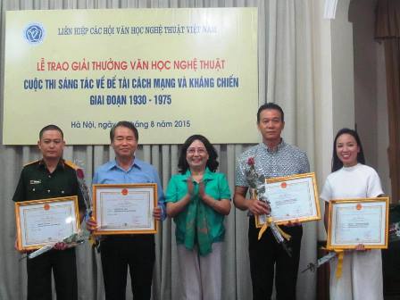 (VOVworld) – La Unión de las Asociaciones de Literatura y Arte de Vietnam ha otorgado premios recientemente, en el marco del concurso de composición sobre la revolución y la lucha durante el período 1930-1975. Las 80 obras galardonadas abarcan distintos géneros: literatura, cinematografía, música, teatro, danza, pintura y reflejan la inspiración de los artistas nacionales por dichos temas. Dos de las obras ganadoras del premio más alto tratan de las guerras y la revolución. Ello muestra que, aunque ambas guerras han finalizado, aún hoy persiste dolor, mucho daño y preguntas sobre la vida y el destino, todo esto se transmite mediante recursos artísticos sumamente creativos.