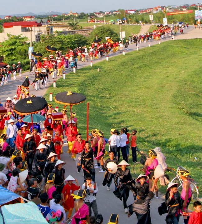 La fiesta Gióng en el poblado Phu Dong atrae anualmente a miles de participantes en la preparación y decenas de miles de visitantes. Sobre todo, a partir de 20l0 cuando ésta fue reconocida por la UNESCO como patrimonio cultural intangible representativo de la humanidad, el número de concurrentes creció mucho. La elección de personas que interpretarían el papel de los señores Hieu y otros personajes fue realizada cuidadosamente. Chính agregó:“El señor Hieu del ejército tenía el nivel de comandante de hoy. Cuando se escuchan 3 tamborileos los participantes en la procesión empiezan a arrastrar al caballo y levantar las banderas para recibirlo. Los señores Hieu o comandantes de banderas, tambores y batintines, y 2 Tieu ho (tigres pequeños) tienen de l8 a 50 años de edad y son fuertes y esbeltos. La persona que interpreta el papel de Co tuong (la general) debe ser de l0 a l3 años de edad para garantizar la solemnidad de la fiesta”.